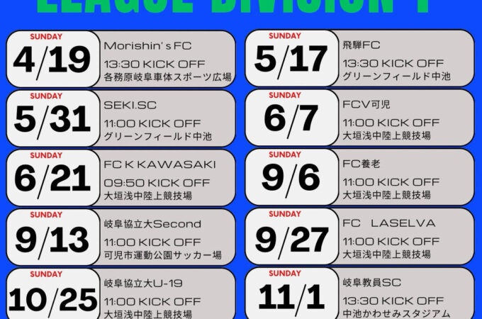 2026SEASON 岐阜県社会人1部リーグスケジュール